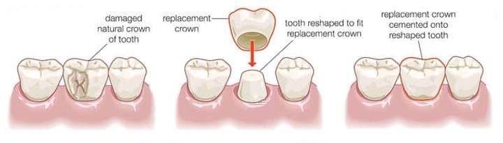 Crowns are used to hold weak, broken or cracked teeth together to avoid further fracturing. Crowns are also used to support large fillings, attach a bridge, or cover discolored or deformed teeth. Crowns may also be placed over dental implants.