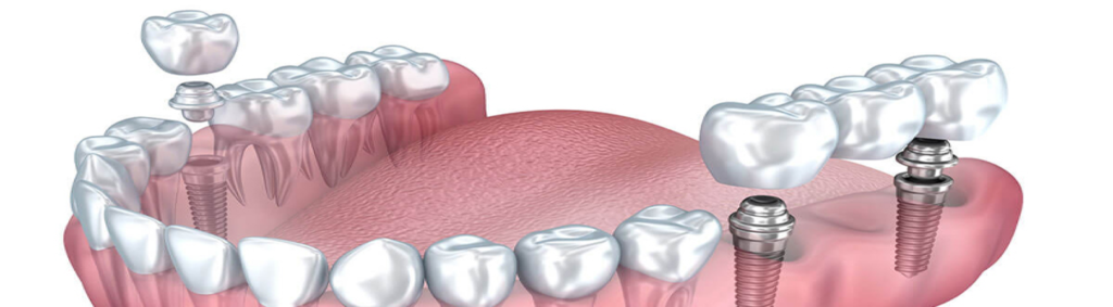 Dental implants improve the health of your jawbone. If you’ve lost a row of two or more consecutive teeth,dental implant-retained crowns are used to restore the power of tooth roots and keep your teeth healthy, functional. Dental implants prevent deterioration of your bone over the years if the tooth roots are not restored. Implant crowns are placed on either side of the gap in your smile, and these two crowns are attached to natural-looking prosthetic teeth to effectively fill in the space. Dental implants are durable, long-lasting, natural, and give you a healthy, bright smile. Modern dental implants have been proven safe and effective as it has been used for more than 30 years.